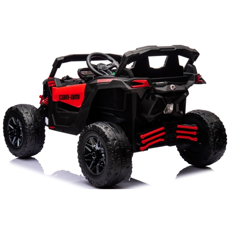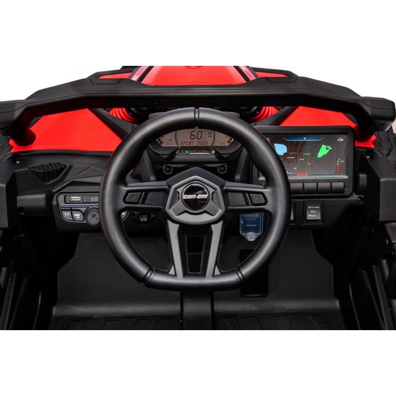 Can Am Maverick (juoda ir raudona) 4x4 (4x200W) minkšti ratai, odinė sėdynė, nuotolinio valdymo pultas, ličio jonų akumuliatorius