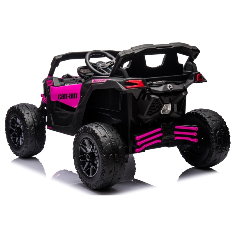 Can Am Maverick (rožinis) 4x4 (4x200W) minkšti ratai, odinė sėdynė, nuotolinio valdymo pultas, ličio jonų akumuliatorius